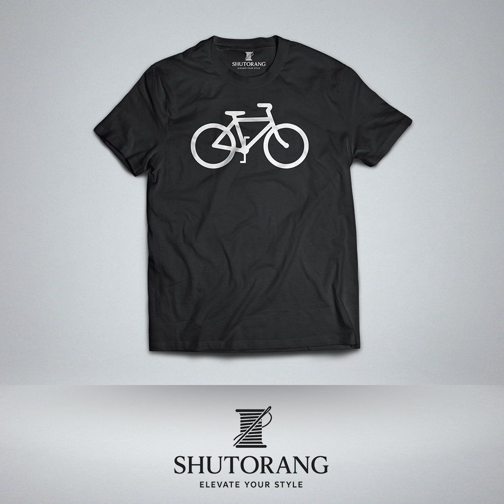 Design: High-quality white line-art bicycle print.
